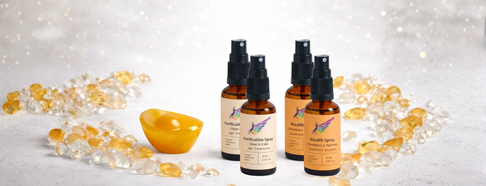 | 天然黃水晶 | 黃水晶象徵活力和財富能量,透過療癒師的能量注入,能確實為場域注入活力與創造動力。 |